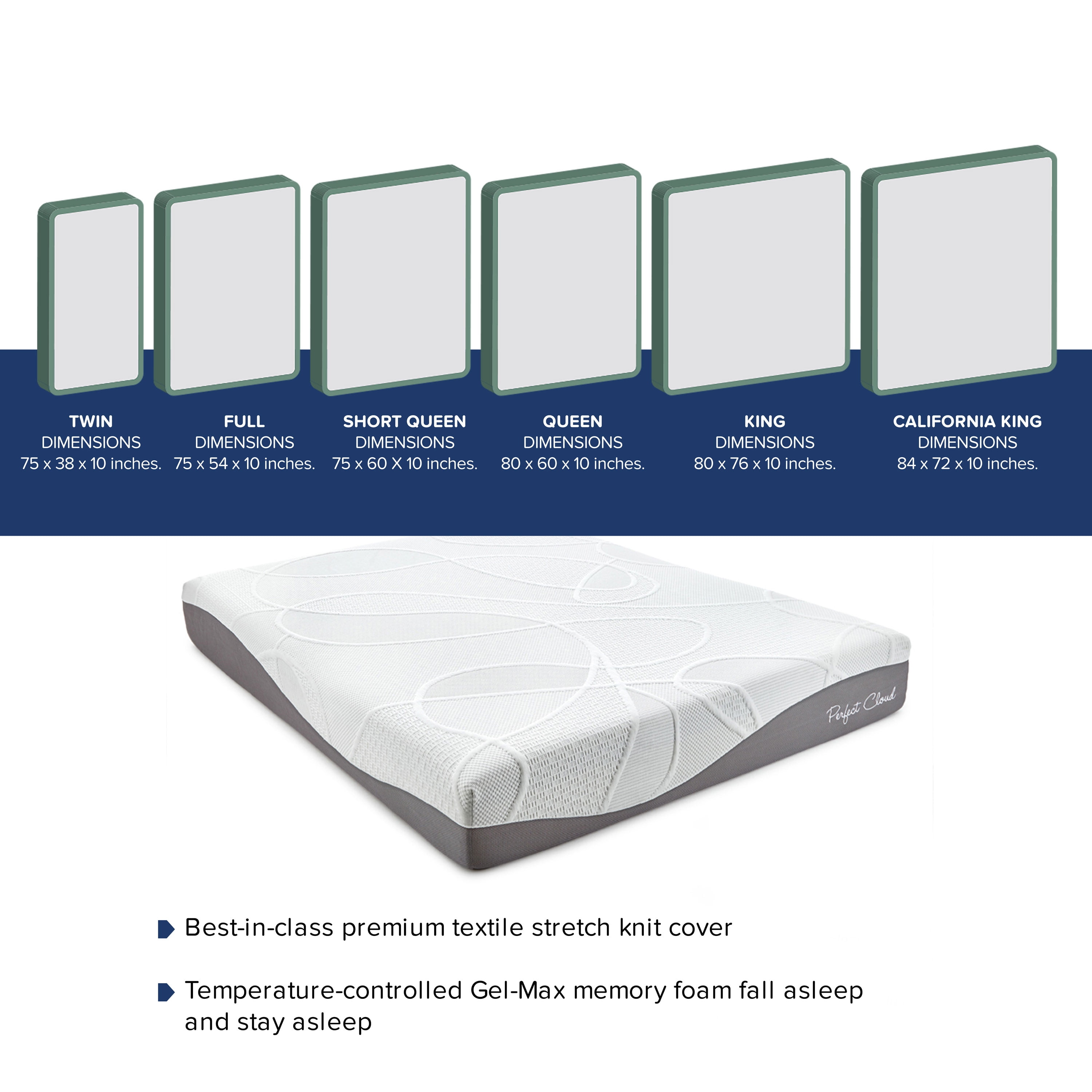 Perfect Cloud Ultraplush Gel Max Memory Foam Mattress 10 Inch