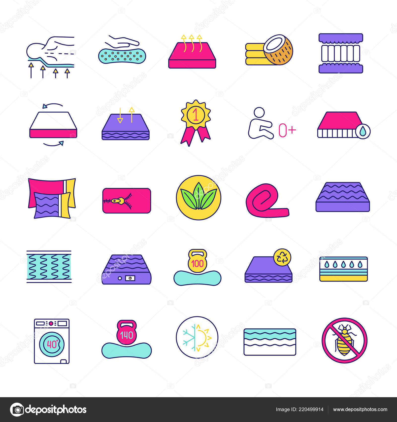 Mattress Color Icons Set Latex Innerspring Stock Vector Royalty