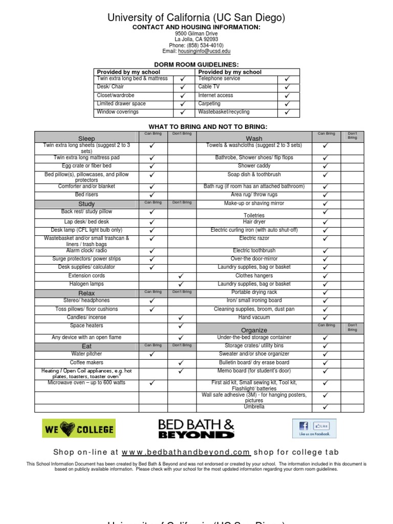College Checklist Essential Dorm List For Freshman Bed Bath
