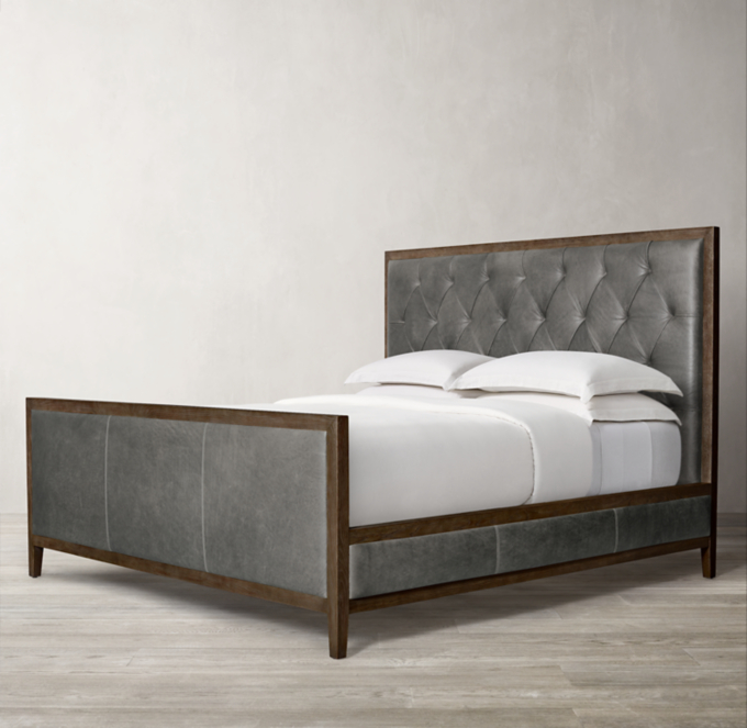 St James Leather Panel Bed With Footboard