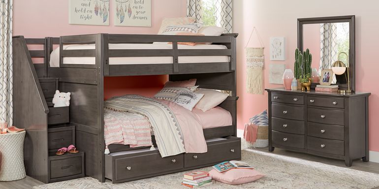 Discovery World Furniture Twin Over Full Charcoal Staircase Bunk