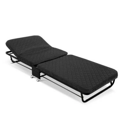 Portable Folding Rollaway Bed Chair With Mattress Single Grey