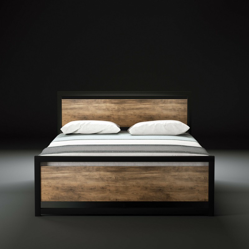 Industrial Full Size Bed Frame With Headboard Metal Platform Bed