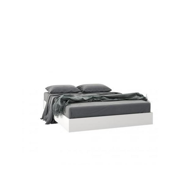 Full Size Platform Bed White Melamine Contemporary Platform