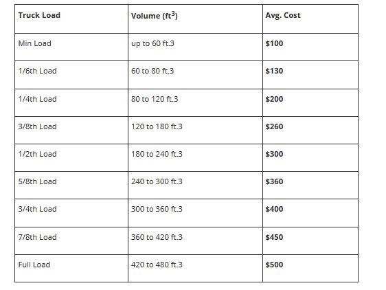 2020 Average Junk Removal Costs Prices By Truck And Load Size