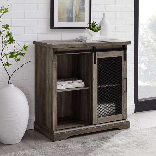 Gray Wash Mesh Sliding Barn Door Cabinet Kirklands