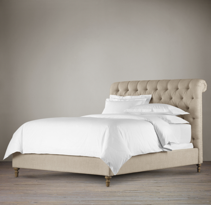 Finn Chesterfield Tufted Linen King Sleigh Bed Zin Home