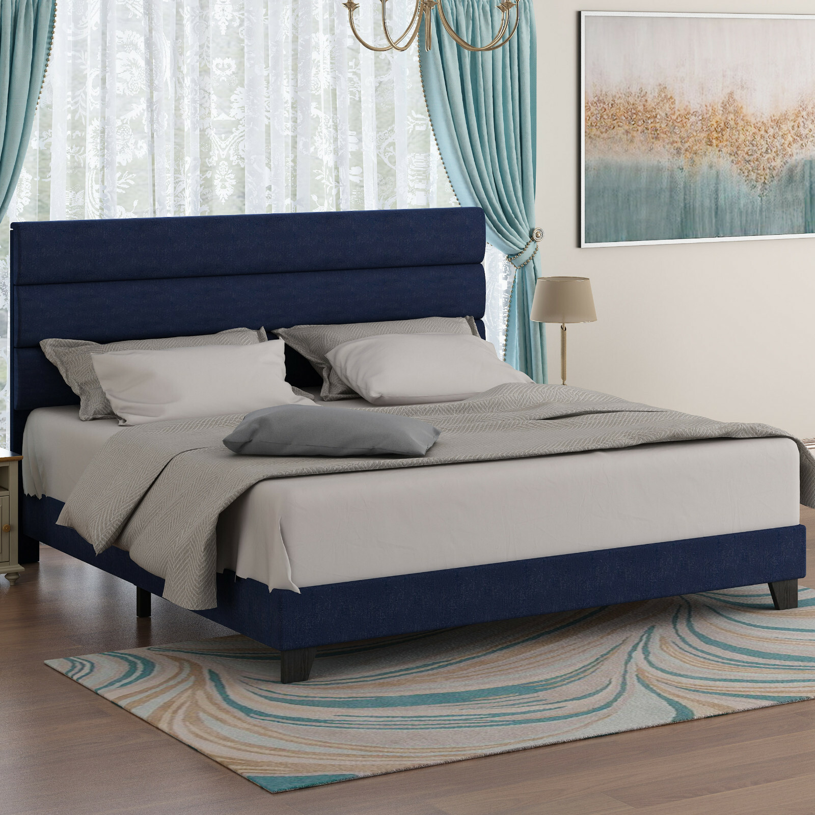 Full Bed Frame Wingback Platform Bed With Headboard Mattress