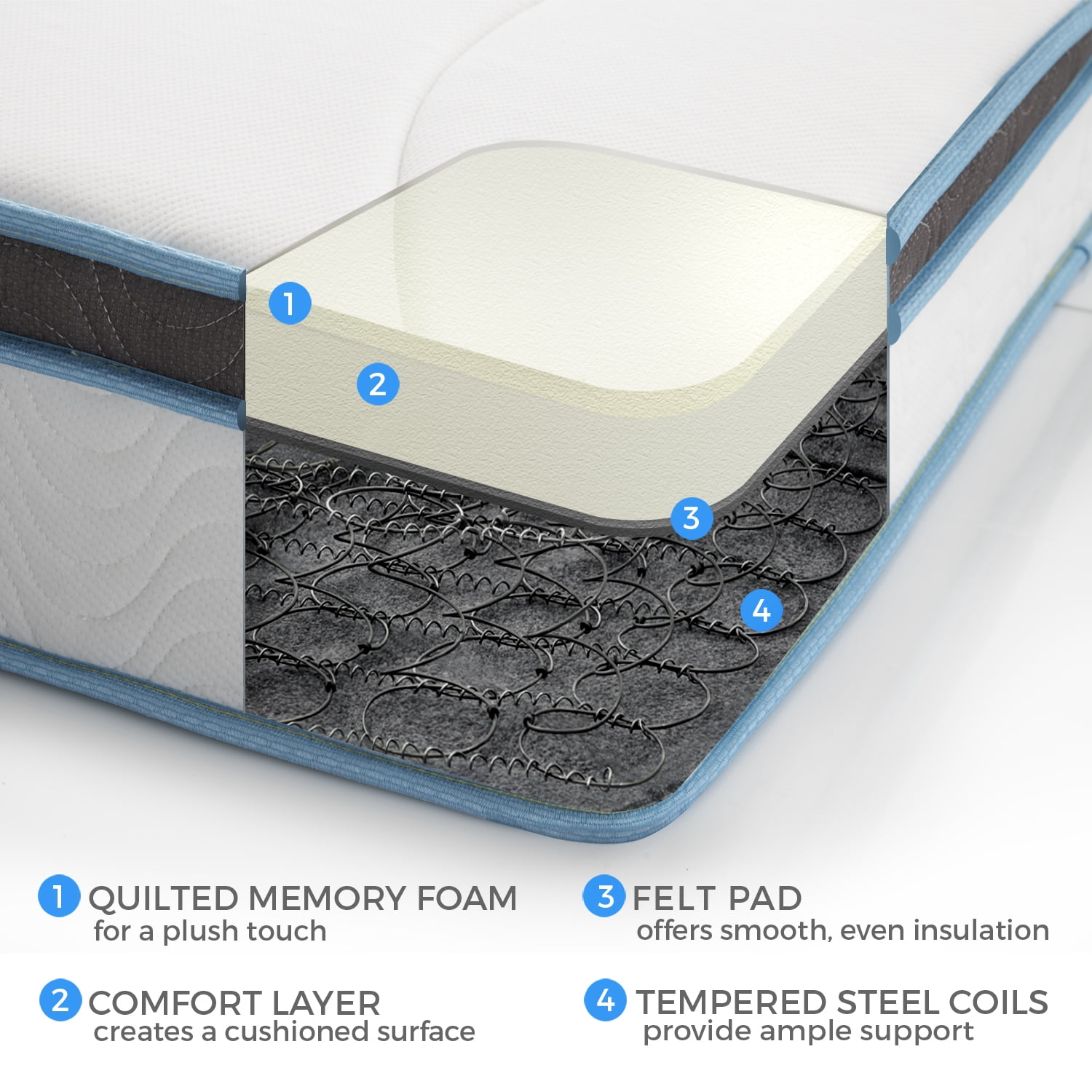 Bedstory Gel Memory Foam Hybrid Mattress Medium Firm Euro Top
