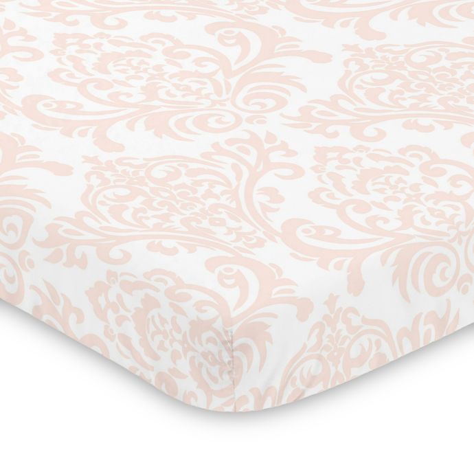 Sweet Jojo Designs Amelia Damask Mini Crib Sheet In Pink White