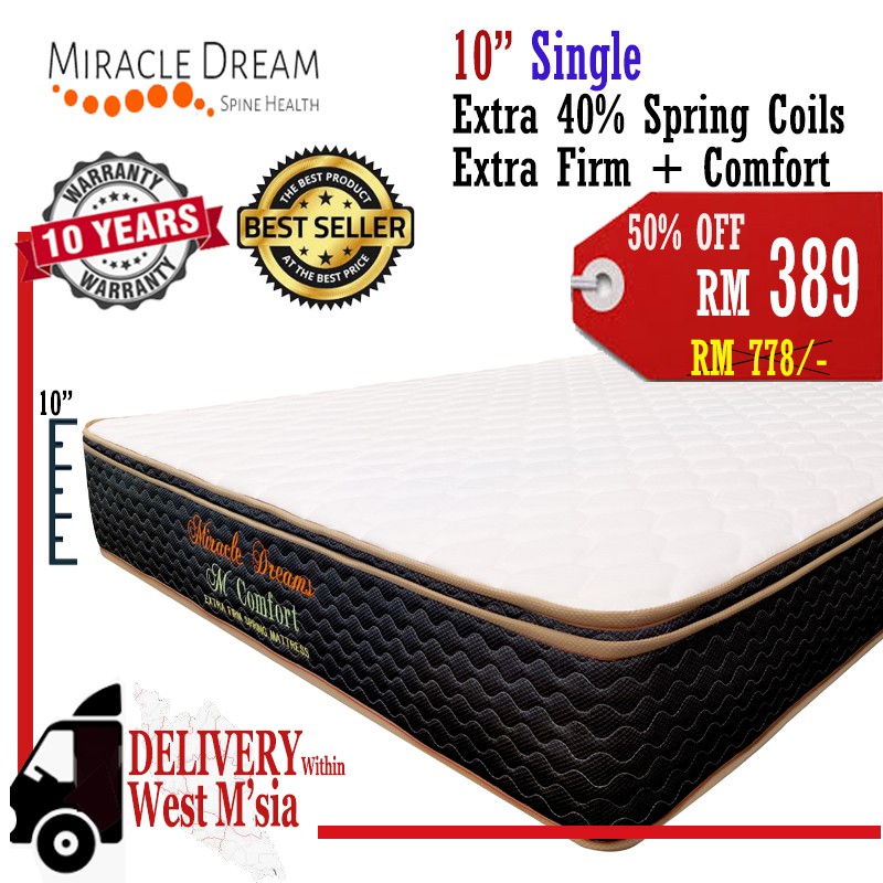 M Comfort Spring Mattress 10 Inch 3 Ft Bed Spine Health Mattress Extra Firm Tilam Miracle Dreams Shopee Malaysia