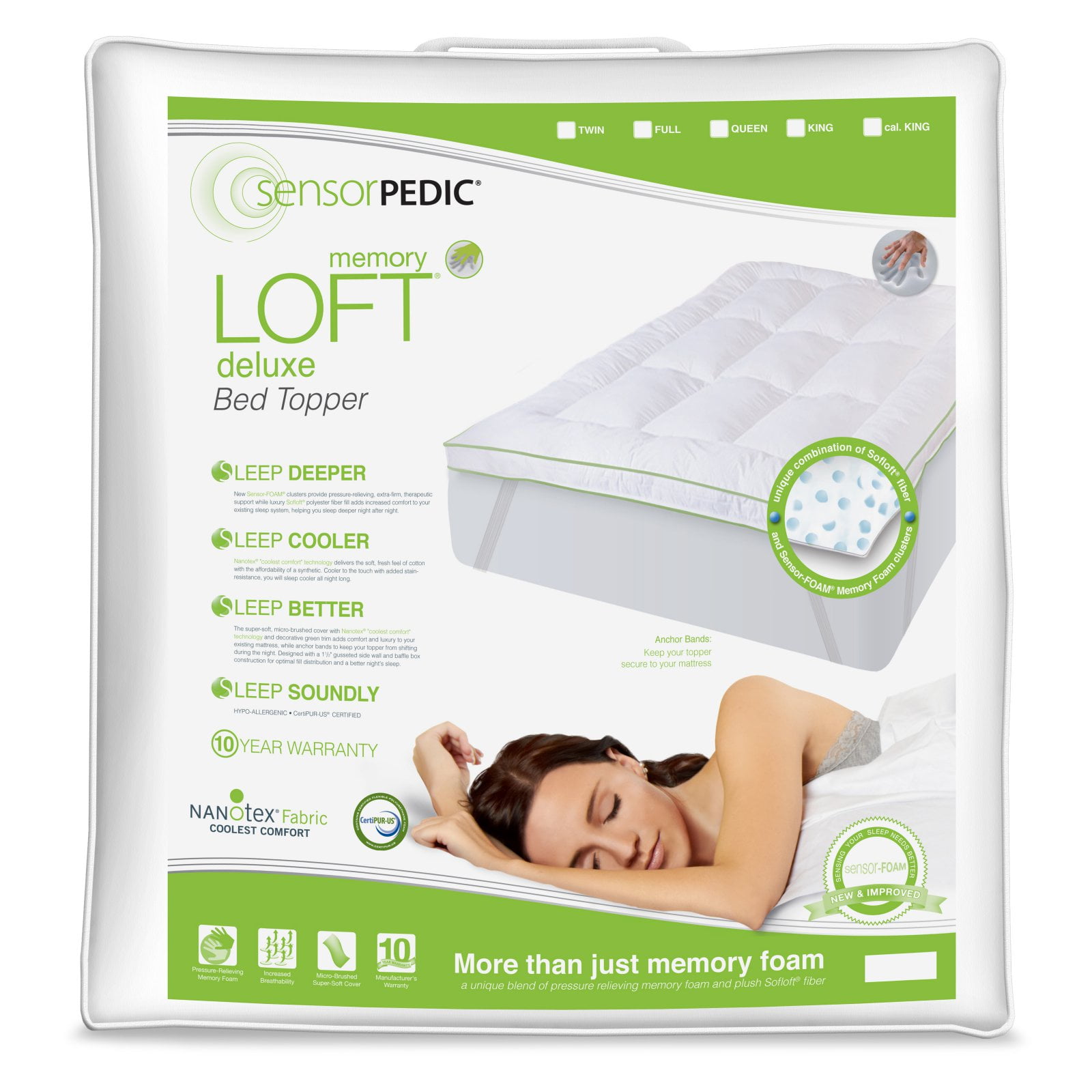 Soft Tex Sensorpedic Reg Memory Loft Classic Mattress Topper