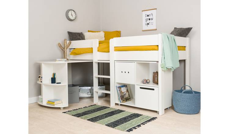 Buy Stompa Mid Sleeper Bed Frame Desk And Cube Unit White