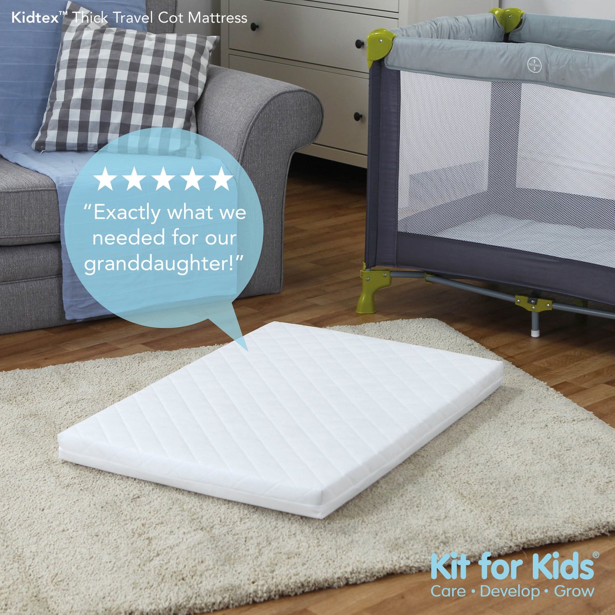 Kit For Kids Kidtex Travel Cot Thick Mattress