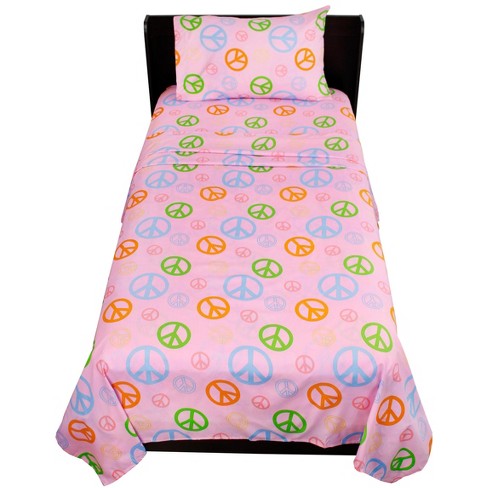 Pink Peace Signs Hippie Bedding Twin Single Bed Sheets Set