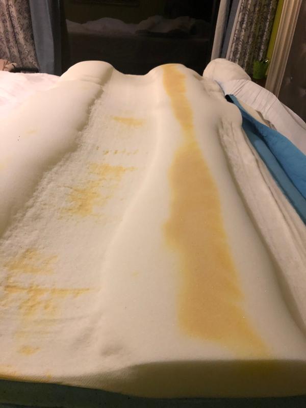 Lifting Up The Mattress Topper To Find This Yellow Stain Picture
