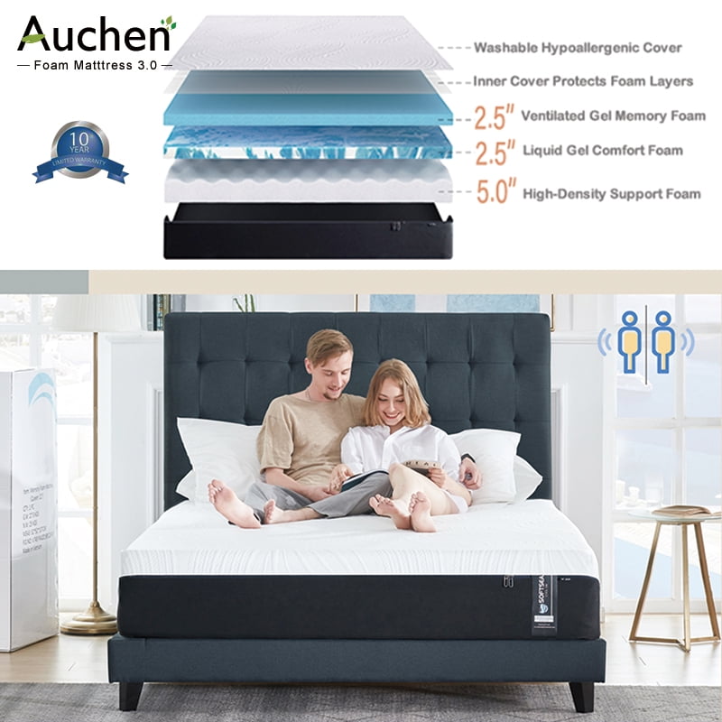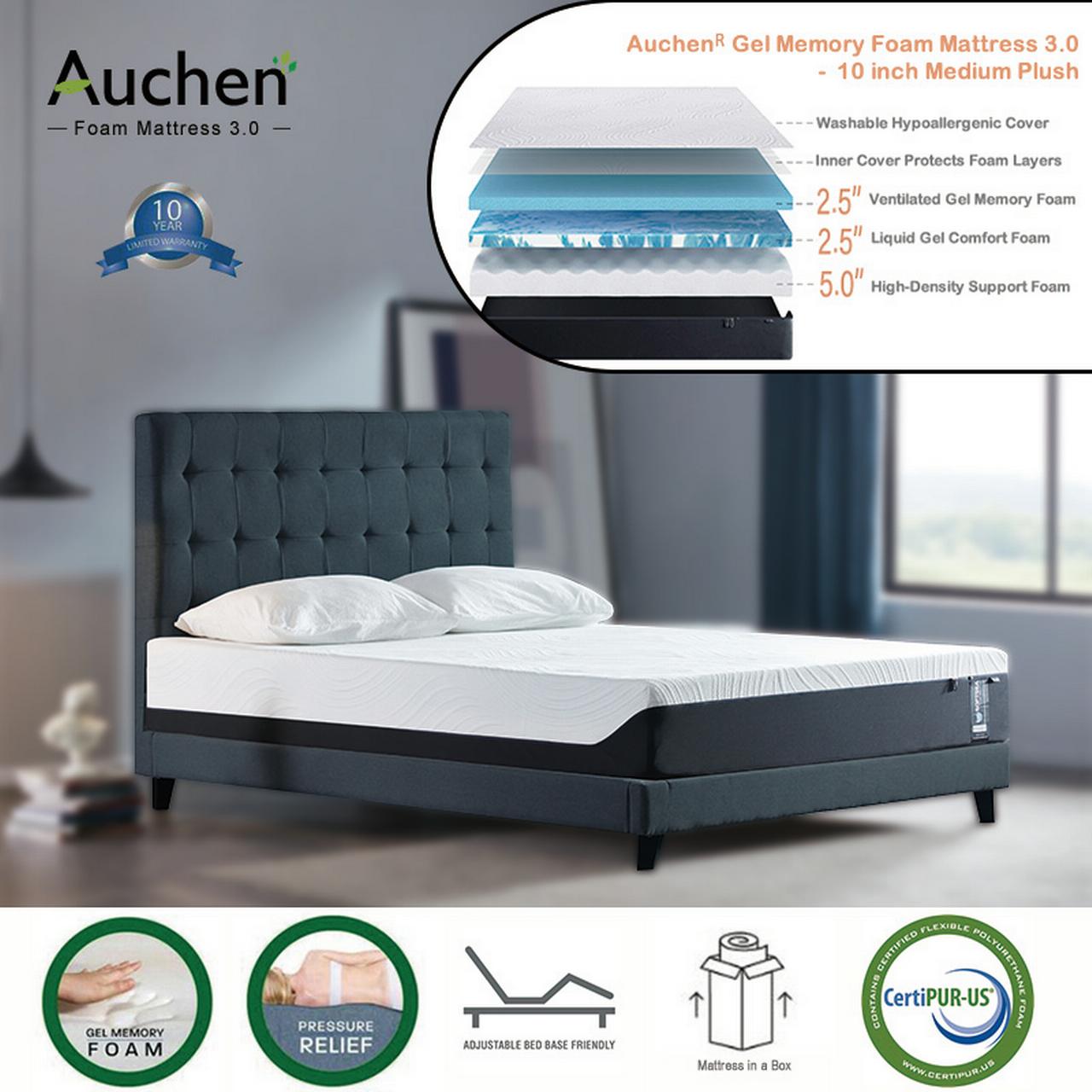 Auchen 10 Full Size Gel Memory Foam Mattress 3 Layer Medium